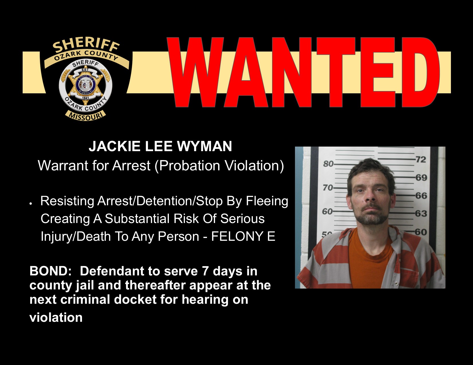 JACKIE LEE WYMAN – MARCH MOST WANTED | Ozark Radio News